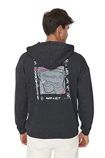 Trendyol Męska bluza z kapturem oversize z dzianiny, Antracytowy melanż, M