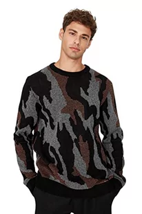 Trendyol Męska bluza z okrągłym dekoltem z nadrukiem Batik, czarna, XL, Czarny, XL