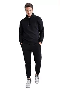 DeFacto Sweter z długim rękawem męski - okrągły dekolt bluza męska (czarny, XL), czarny
