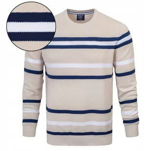 Bawełniany sweter w ponadczasowe paski i o nietuzinkowej fakturze stanowi doskonałe uzupełnienie każdej męskiej stylizacji.