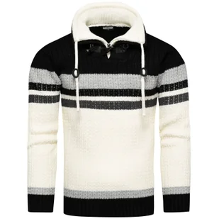 Gruby męski sweter w norweskim stylu z wywijanym kołnierzem Recea