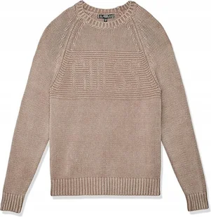 Guess Męski Beżowy Sweter z Okrągłym Dekoltem i Napisem XS Gma - GUESS