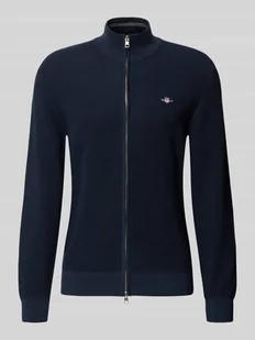 Kardigan męski od Gant;Czysta bawełna;Dopasowany krój;Stójka;Zamek błyskawiczny dwustronny;Wyhaftowane logo;Długość pleców w rozmiarze M: 70 cm;Długość rękawa w rozmiarze M: 64 cm