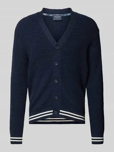 Kurtka z dzianiny męska OLYMP Level Five;Czysta bawełna;Krój slim fit;Prążkowane wykończenia;Dekolt w serek;Listwa guzikowa;Długość tyłu w rozmiarze M: 76 cm;Długość rękawa w rozmiarze M: 71 cm