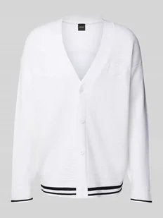 Kurtka z dzianiny męska BOSS Green;Mieszanka bawełny i lyocellu;Luźny krój;Prążkowane wykończenia;Dekolt w serek;Listwa guzikowa;Długość tyłu w rozmiarze M: 77 cm;Długość rękawa w rozmiarze M: 59 cm