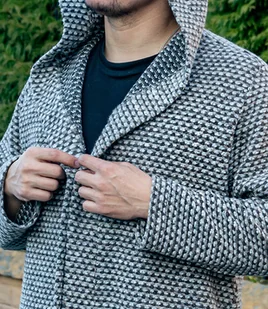 Męski Szary Ciepły Wełniany Kardigan Z Kapturem. Świetny Prezent Dla Niego.