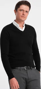 Klasyczny sweter męski. Dekolt V z kołnierzykiem koszulowym. Po lewej stronie klatki piersiowej haft z nici. Dół swetra i rękawy zakończone prążkowanym ściągaczem. Kategoria 80% bawełna, 20% nylon Regularnykrój Dekolt w szpic Wzór Długość:
