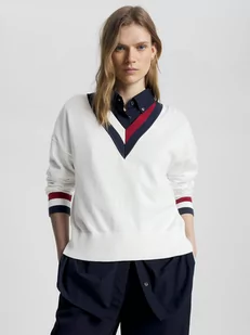 Damski sweter z kolekcji Tommy Hilfiger wykonany jest z cienkiego dzianiny. Model z niezwykle przyjemnego w dotyku materiału. Uniwersalny sweter nadający się do każdej szafy.