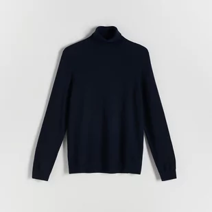 Sweter z golfem golf męski bawełniany dopasowany w prążek granatowy XL