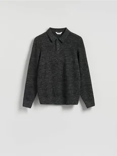 Reserved - Bawełniany sweter polo - ciemnoszary