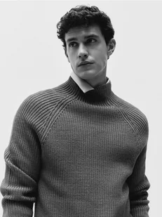 Reserved - Prążkowany sweter z niską stójką - ciemnoszary