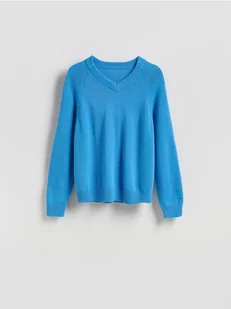 Sweter o prostym kroju, wykonany z bawełnianej dzianiny.