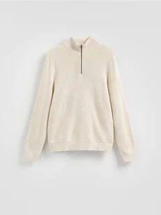 Reserved - Sweter z rozpinanym golfem - beżowy