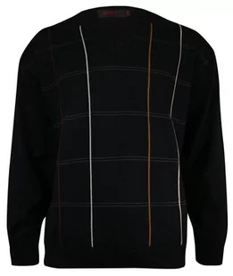 Sweter Czarny, w Kratkę, Dekolt w Serek (V-neck) -KINGS- Męski, Elegancki - Kings