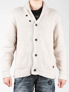 -Sweter dla panów z długim rękawem-Zapięcie na guziki-Wysoki wykładany kołnierz-2 kieszonki-Kolor: white chalk-Materiał: 79% bawełna/ 11% poliester/ 7% akryl/ 3% wełna