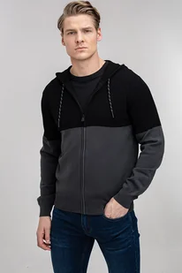 Rozpinany sweter z kapturem w grafitowym kolorze z czarnymi sznurkami
