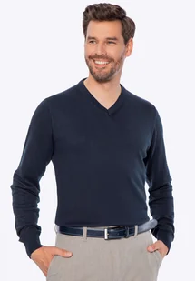 Kluczowe cechy: Materiał: Połączenie bawełny i kaszmiru sprawia, że sweter jest wyjątkowo miękki, przyjemny w dotyku i komfortowy w noszeniu. Dekolt w serek: Elegancko wykończony, nadaje swetrowi ponadczasowego charakteru i świetnie komponuje się z koszulą lub T-shirtem. Klasyczny krój: