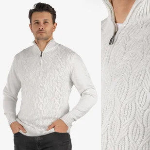Sweter Męski Biały Golf Rozpinany Gruby Zimowy Wełniany Ciepły L Biały, grubszy sweter męski z wygodnym półgolfem zapinanym na suwak to doskonały wybór dla osób poszukujących ciepłego, praktycznego i eleganckiego elementu garderoby na zimę. Wykonany z wełny jagnięcej, kaszmiru i elastycznych domieszek gwarantuje wyjątkowy komfort noszenia, jednocześnie zapewniając świetną izolację termiczną w chłodne dni. Dzięki klasycznemu, lekko dopasowanemu krojowi oraz estetycznemu splotowi na froncie, sweter doskonale sprawdzi się zarówno w codziennych, jak i bardziej eleganckich stylizacjach, czyniąc go zakupem w pełni uzasadnionym i wyjątkowo funkcjonalnym. PARAMETRY I NAJWAŻNIEJSZE INFORMACJE: Kolor: śnieżna biel podkreślająca świeżość i elegancję Materiał: