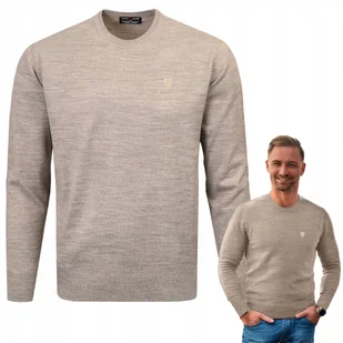 SWETER Męski Klasyczny BASIC Gładki BEŻOWY melanż XXL Pako Jeans