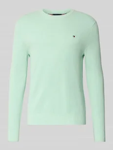 Sweter z dzianiny męski Tommy Hilfiger;Efekt: jednolity kolor, imitacja dzianiny;Krój: Krój regular fit ;Aplikacja: Detal z logo;Kształt kołnierza: Bez dekoltu;Dekolt: