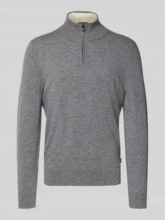 Sweter z dzianiny męski BOSS;Model ‘Hemarlo’;Efekt: jednolity kolor;Krój: Krój regular fit ;Aplikacja: Naszywka z logo;Kształt kołnierza: Stójka;Rękaw: