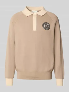Sweter z dzianiny męski PROHIBITED;Luźny krój;Kołnierzyk polo;Krótka listwa guzikowa;Detal z logo;Zakończenia rękawów z prążkowanego ściągacza;Długość tyłu w rozmiarze L: 71 cm;Długość rękawa w rozmiarze L: 70 cm