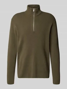 Sweter z dzianiny męski Lindbergh;Mieszanka bawełny;Dopasowany fason;Kołnierz zapinany;Detal z logo;Długość tyłu w rozmiarze M: 70 cm;Długość rękawa w rozmiarze M: 70 cm
