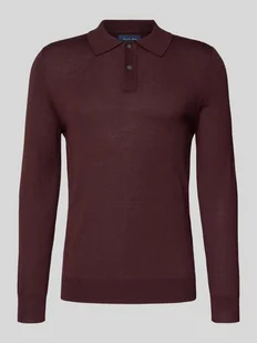 Sweter z dzianiny męski Christian Berg Men;Mieszanka wełny;Krój slim fit;Kołnierzyk polo;Krótka listwa guzikowa;Prążkowane wykończenia;Długość tyłu w rozmiarze M: 72 cm;Długość rękawa w rozmiarze M: 67 cm