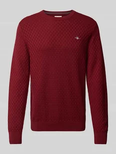Sweter z dzianiny męski Gant;Mieszanka wełny Escorial z dodatkiem bawełny;Prosty krój;Okrągły dekolt;Wyhaftowane logo;Prążkowane wykończenia;Długość tyłu w rozmiarze M: 74 cm;Długość rękawa w rozmiarze M: 70 cm