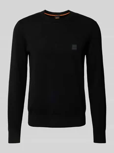 Sweter z dzianiny męski BOSS Orange;Mieszanka bawełny z domieszką kaszmiru;Prosty krój;Model ‘Kanovano’;Okrągły dekolt z prążkowanego ściągacza;Naszywka z logo;Prążkowane wykończenia;Długość tyłu w rozmiarze M: 67 cm;Długość rękawa w rozmiarze M: 68 cm