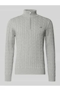 Sweter z dzianiny ze ściegiem warkoczowym i kołnierzykiem polo