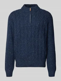 Sweter z dzianiny męski Fynch-Hatton;Mieszanka bawełny z dodatkiem wełny z alpaki;Luźny krój;Prążkowane wykończenia;Kołnierz zapinany;Krótki zamek błyskawiczny;Długość tyłu w rozmiarze M: 70 cm;Długość rękawa w rozmiarze M: 70 cm