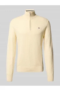 Sweter z dzianiny męski Gant;Mieszanka wełny Escorial i bawełny;Krój regular fit;Prążkowane wykończenia;Stójka;Krótki zamek błyskawiczny;Wyhaftowane logo;Długość tyłu w rozmiarze M: 77 cm;Długość rękawa w rozmiarze M: 69 cm