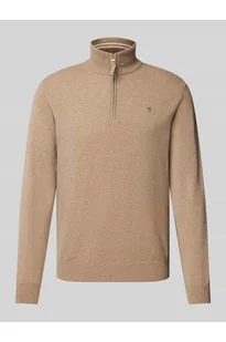 Sweter z dzianiny męski GANT;Czysta bawełna;Dopasowany krój;Model SUPERFINE;Wyhaftowane logo;Prążkowane wykończenia;Stójka;Zamek błyskawiczny;Długość tyłu w rozmiarze M: 75 cm;Długość rękawa w rozmiarze M: 66 cm