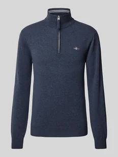 Sweter z dzianiny męski GANT;Czysta bawełna;Dopasowany krój;Model ‘SUPERFINE’;Wyhaftowane logo;Prążkowane wykończenia;Stójka;Zamek błyskawiczny;Długość tyłu w rozmiarze M: 75 cm;Długość rękawa w rozmiarze M: 66 cm