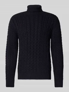 Sweter z dzianiny męski Superdry;Mieszanka materiałów z dodatkiem wełny;Dopasowany fason;Model ‘Jacob’;Ścieg warkoczowy;Prążkowane wykończenia;Długość tyłu w rozmiarze M: 70 cm;Długość rękawa w rozmiarze M: 70 cm