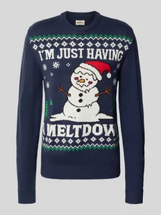 Sweter z dzianiny męski Montego;Krój regular fit;Wzór na całej powierzchni;Okrągły dekolt;Długość tyłu w rozmiarze M: 72 cm;Długość rękawa w rozmiarze M: 72 cm