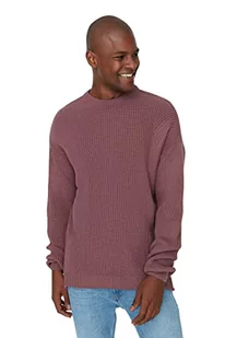 Trendyol Męska bluza z okrągłym dekoltem, jednokolorowa, oversize, sweter, różowy, L