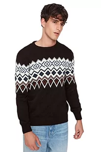 Trendyol Męska bluza z okrągłym dekoltem w etniczny wzór slim sweter, Brązowy, XL