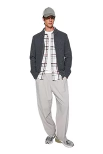 Trendyol Męski wąski krój podstawowy kardigan z dzianiny z wysokim dekoltem, ciemnoszary, L, ciemnoszary, L