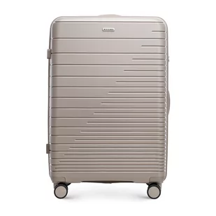 Duża walizka z polipropylenu. Ta duża walizka to praktyczny i stylowy wybór dla każdego miłośnika podróży. Dzięki możliwości poszerzenia łatwo dopasujesz ją do swoich potrzeb, zarówno przed, jak i w trakcie wyjazdu. Wykonana została z wysokiej jakości polipropylenu, więc jest lekka i bardzo elastyczna. Matowy korpus zdobią błyszczące, poziome paski, które nadają jej nowoczesny wygląd.