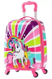 Walizka kabinowa z motywem JEDNOROŻCA Posiada wysuwaną rączkę teleskopową Cztery koła 360 st odporne na obciążenie Dwuczęściowa komora Pasy zabezpieczające w...