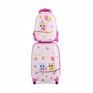 Cechy: Zawiera 2 sztuki bagażu: twardą walizkę i plecakWalizka ma poprzeczne paski i kieszeń na suwak do uporządkowanego przechowywania przedmiotówPlecak ma elastyczną kieszeń i przegrodę do przechowywania przedmiotówSolidna walizka dziecięca wykonana z bezpiecznych i trwałych materiałów zapewnia długotrwałe użytkowanieWysokość teleskopowej rączki można dostosować do dzieci o różnym wzrościeWyposażona w płynne dwukierunkowe zamki błyskawiczne ułatwiające otwieranie i zamykanie bagażuWyposażony w cztery uniwersalne koła obracające się o 360°/2 duże koła obrotowe, które można elastycznie przesuwaćSzerokie paski na ramię mają regulowane sprzączki umożliwiające dostosowanie długościDzięki uroczym i zabawnym wzorom może przyciągnąć uwagę dzieci od pierwszego wejrzeniaDane techniczne: Kolor: różowyMateriał: ABS, PC, aluminiumRozmiar bagażu podręcznego: 32,5 x 22 x 82 cm (dł. x szer. x wys.)Rozmiar plecaka: