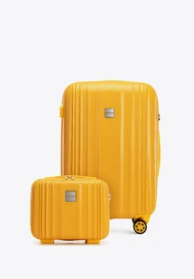 Średnia walizka i kosmetyczka z polikarbonu tłoczone żółte