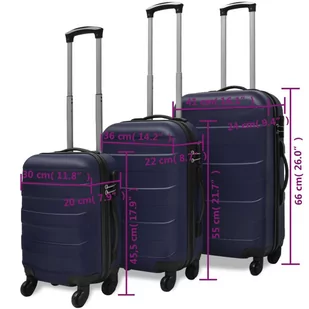 Wysoce trwałe i lekkie walizki sprawdzą się doskonale w czasie każdej podróży. W skład przesyłki wchodzą 3 walizki w różnych rozmiarach, dzięki czemu mniejsze mogą być przechowywane w większej, co pozwala zaoszczędzić przestrzeń.