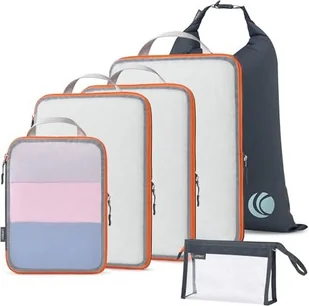 Te torby do pakowania walizek z dodatkowym kompresorem - zamkiem błyskawicznym do pakowania ubrań poprzez wyciskanie z nich powietrza. Torba i 1 x worek na pranie. Dzięki różnym opcjom rozmiaru można również mieszać i dopasowywać kostki, aby pasowały do każdego zabieranego ze sobą bagażu, od Weekendera po duży bagaż podróżny: nasza kompresja podróżna towarzyszy Ci wszędzie, gdziekolwiek jesteś, nadaje się na rodzinne wakacje, podróże służbowe, piesze wycieczki, kemping, wakacje w kamperze lub rejs, pakowanie do bryzy.