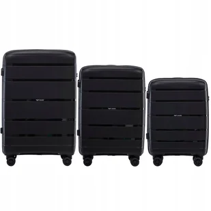 Materiał - POLIPROPYLENWymiary wraz z częściami zewnętrznymi: ok. 75x50x30 / 65x44x25 / 55x39x20 cm4 kółka 360° z łożyskami kulkowymiZamek szyfrowy TSARegulowany, oznakowany uchwyt teleskopowyWewnętrzne pasy mocującePrzedział podzielony na dwie sekcje z dodatkową kieszenią na suwak*Tolerancja wymiarów: +/- 2 cm
