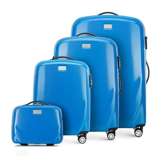 WITTCHEN PC Ultra Light Zestaw 4 walizek Twardy bagaż Walizki podróżne z polikarbonu 4 kółka skrętne Zamek TSA Teleskopowy uchwyt Rozmiar (S+M+L+Kosmetyczka) Niebieski