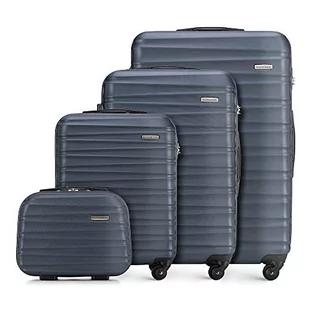 WITTCHEN Walizka podróżna, bagaż podręczny, bagaż kabinowy, walizka na kółkach, twarda obudowa z tworzywa ABS, z 4 kółkami, zamek szyfrowy, uchwyt teleskopowy Groove Line, granatowy, Koffer-Set 4tlg.,