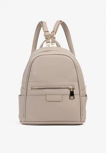 Ciemnobeżowy Mały Plecak z Metaliczną Aplikacją i Suwakiem Pasmoria